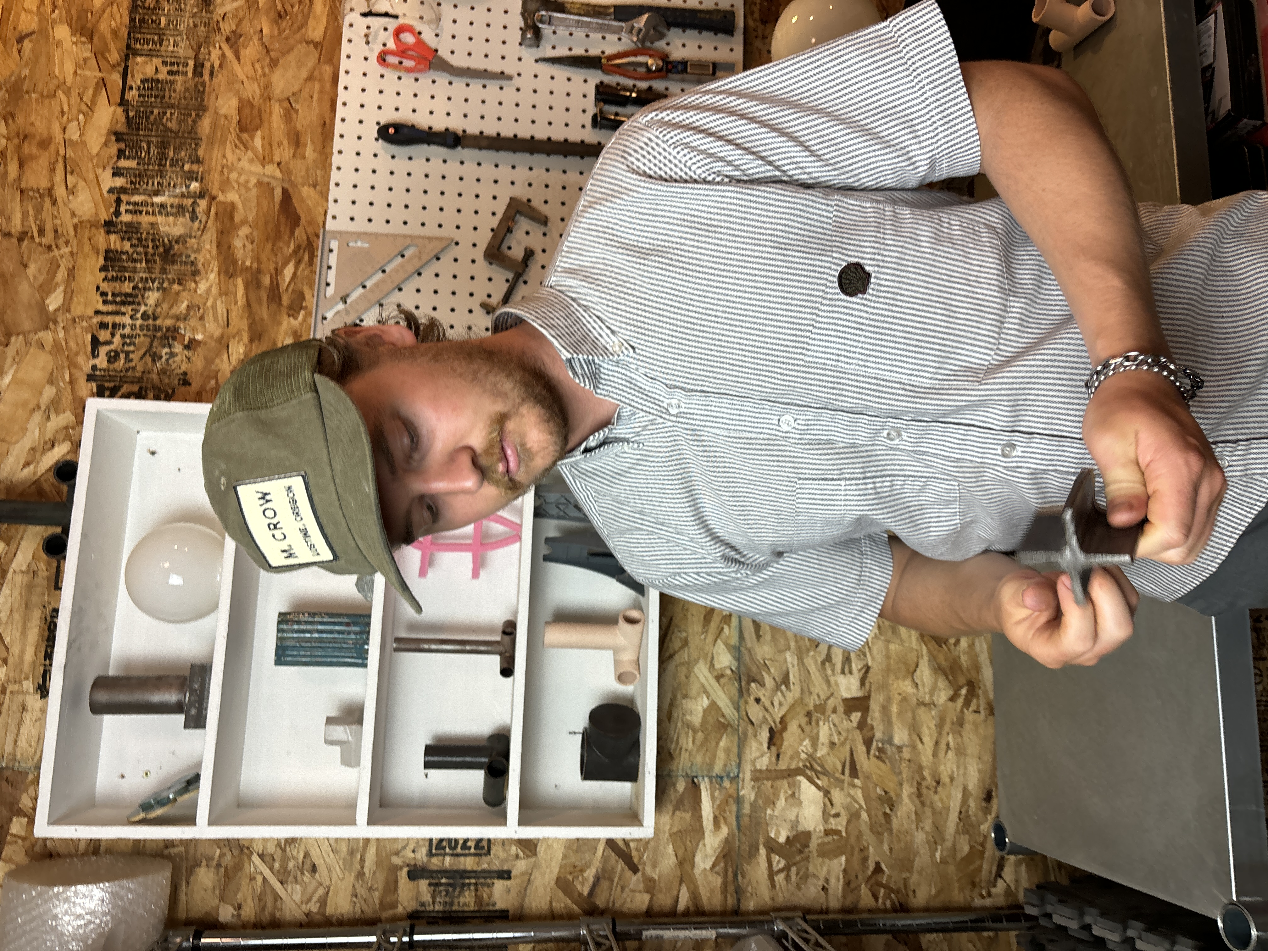 Nolan is a designer and artist drawing inspiration from architectural and utilitarian details that surround us but are often overlooked. He designs and makes furniture, lighting and propositional objects. Nolan’s practice often prioritizes designing with things that already exist in our industrialized world and giving them new life by playfully changing the context within which they are used and experienced. His process is driven by self imposed limitations often prioritizing practicality, in attempts to understand how restriction influences the making and final results.