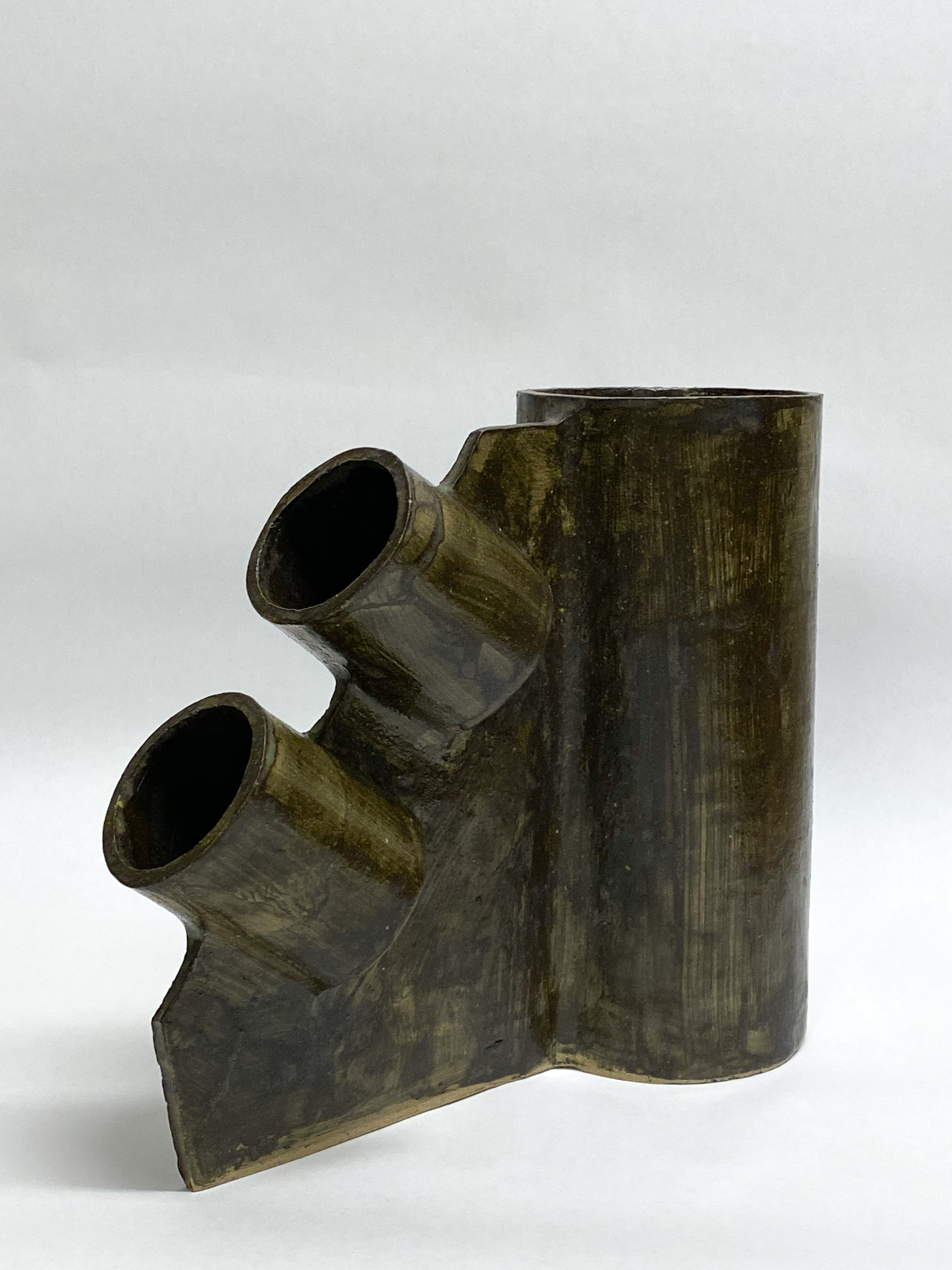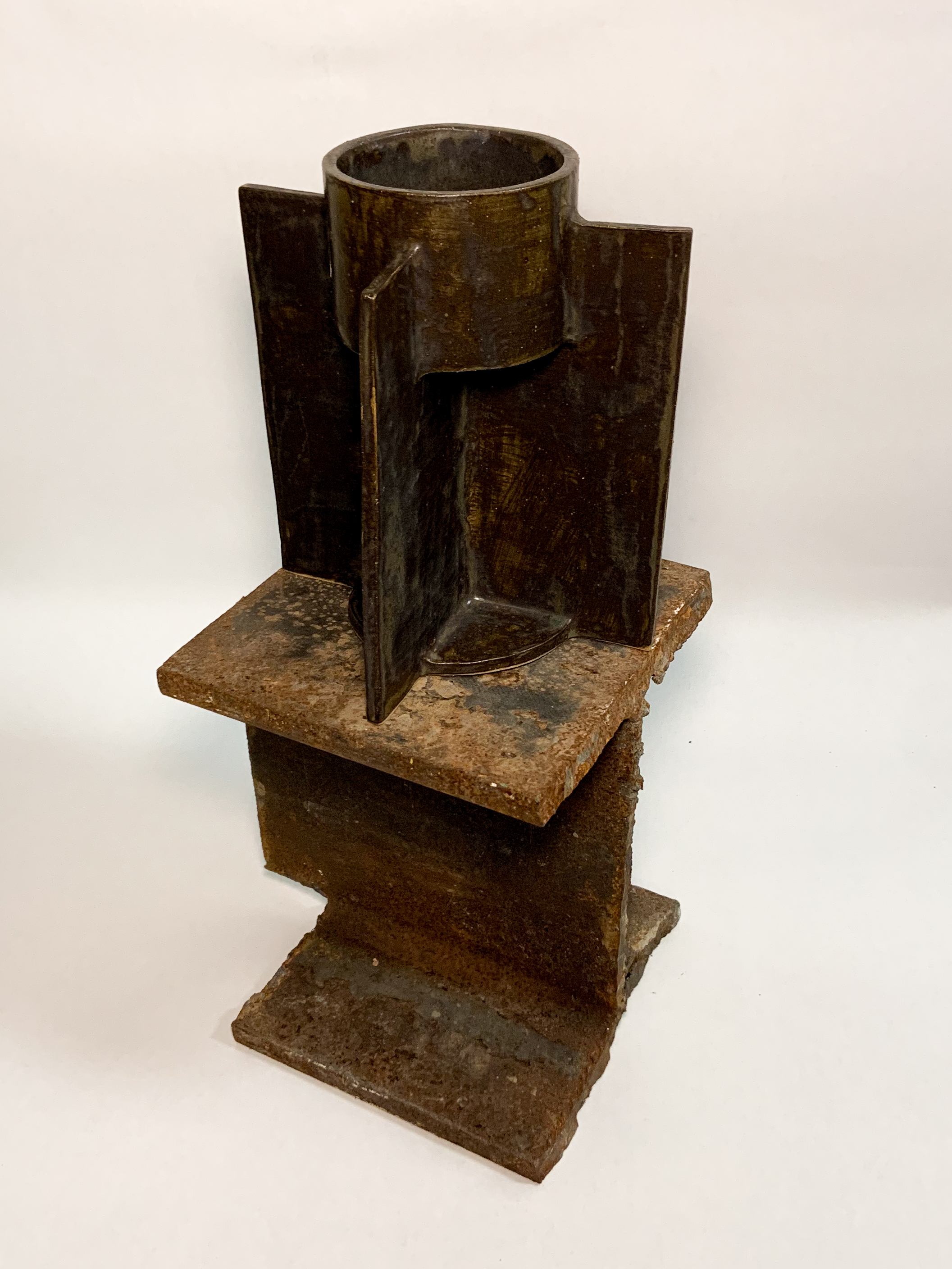 The Post vessel pieces are a series of ceramic vessels inspired by utilitarian, function driven design in the architectural landscape. Each piece is an investigation into the simple detail of a vertical post meeting the horizontal plane. The glazes used are reminiscent of weathered metals.
