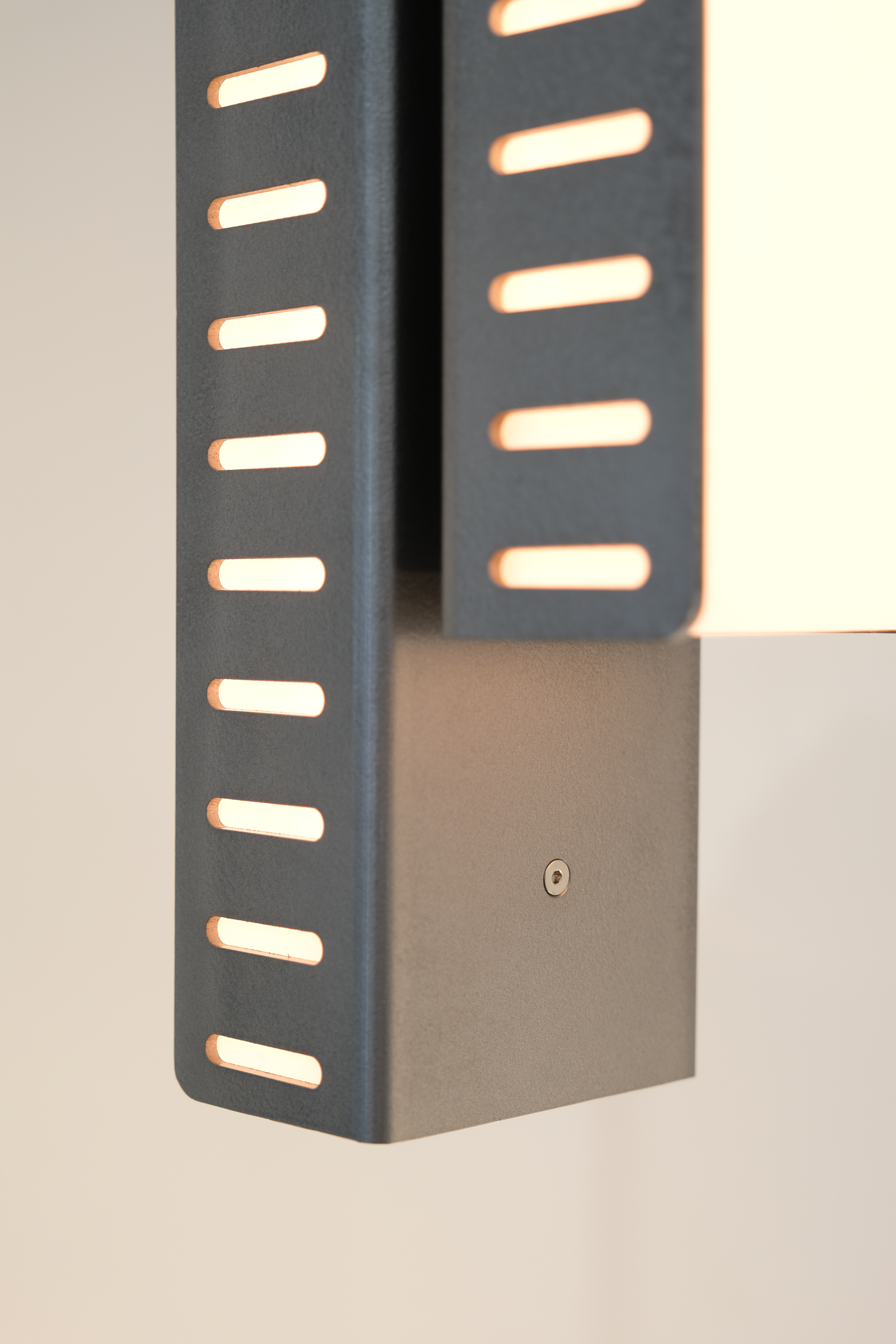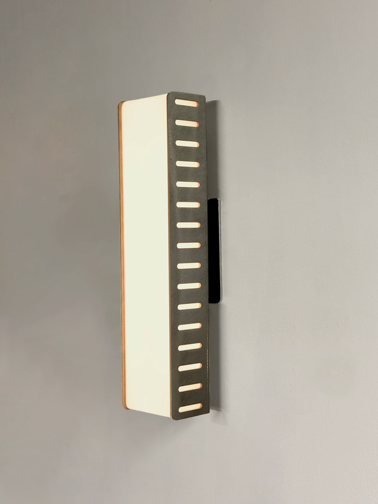 Slotted is a minimal multidirectional luminaire. Its distinct housing features a linear array of perforations that disperse light through repetition of negative form.
